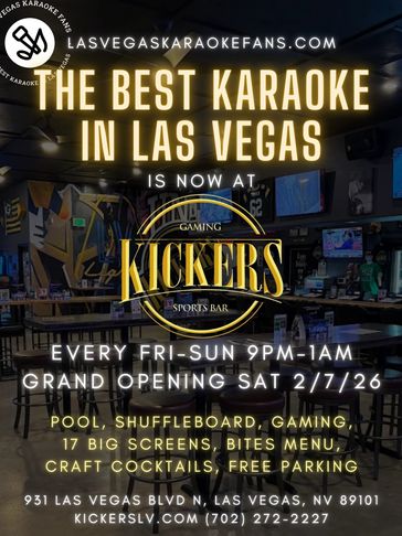 The best karaoke in Las Vegas now in Downtown LV at Kickers! Every Saturday & Sunday 9pm-1am. LVKF offers a huge music library, pro sound, and a friendly crowd. Just across the street from Neon Museum, Kickers offers free parking, pool, shu